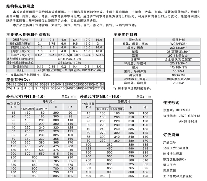 本系列減壓閥屬于先導活塞式減壓閥。由主閥和導閥兩部分組成。主閥主要由閥座、主潤盤、活塞、缸套、彈簧等零件組成。導閥主要由閥座、閥瓣、膜片、彈簧、調節彈簧等零件組成。通過調節調節彈簧壓力設定出口壓力,利用膜片傳感出口壓力變化,通過導閥啟閉驅動活塞調節主閥節流部位過流面積的大小,實現減壓穩壓功能。
